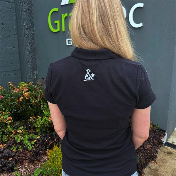 Grasstec Ladies - Cows & Coffee - Embroidered Navy Polo T-Shirt