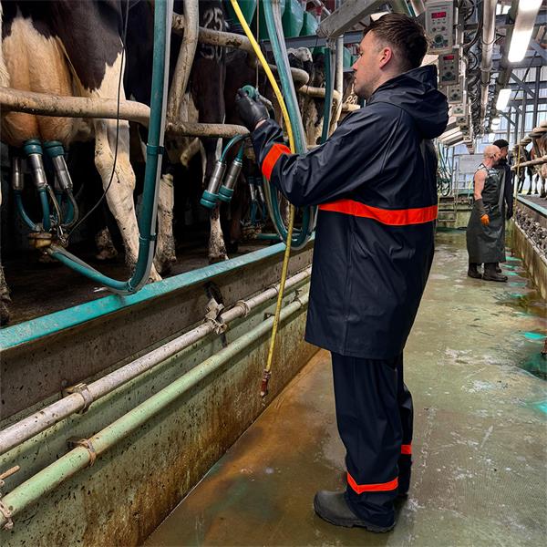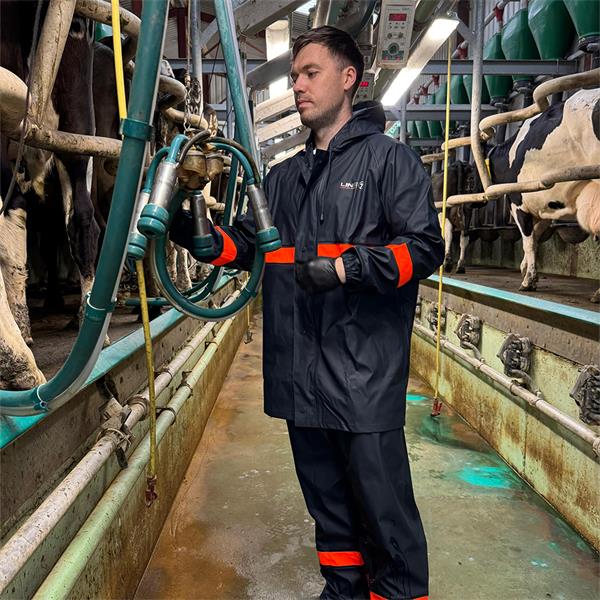 Line7 Station Adult is a waterproof jacket and trouser set with wind, and 8,000mm rating waterproof outer fabric. This kit is great for milking cows, and powerwashing. It has many unique features such as its domed cuffs which doesn't allow water down your sleeves. It has many features that makes it an excellent additon to any farm.