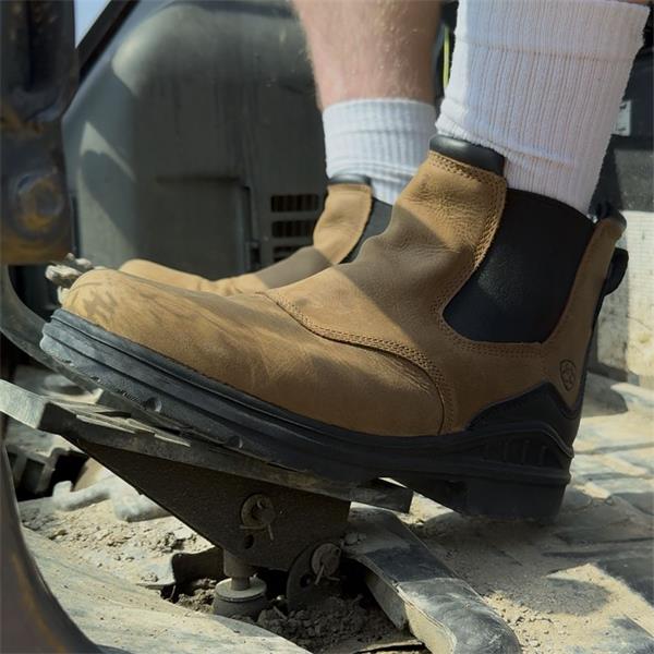 Ariat Barnyard Work Boots are ready for the toughest jobs. Full-grain leather with waterproof construction delivers durability and all-day comfort. Twin gore stretch panels accommodate a range of calf sizes comfortably. The perfect pair of boots for several working jobs. Well known for their enhanced comfort and versatility around all farms. These boots are lighter then other work boots making them easier to wear all day no matter the weather.
