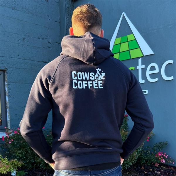 High-quality cosy Embroidery hoodie, complete with Embroderied Grasstec logo on the front, Cows & Coffee emblem on sleeve and Cows & Coffee Design on the back. Thanks to being embroidered these hoodies are longer lasting. Designed for Men In Farming these hoodies can be worn casually, on the farm, at a show, etc. Check out our full Grasstec Men's Range here.