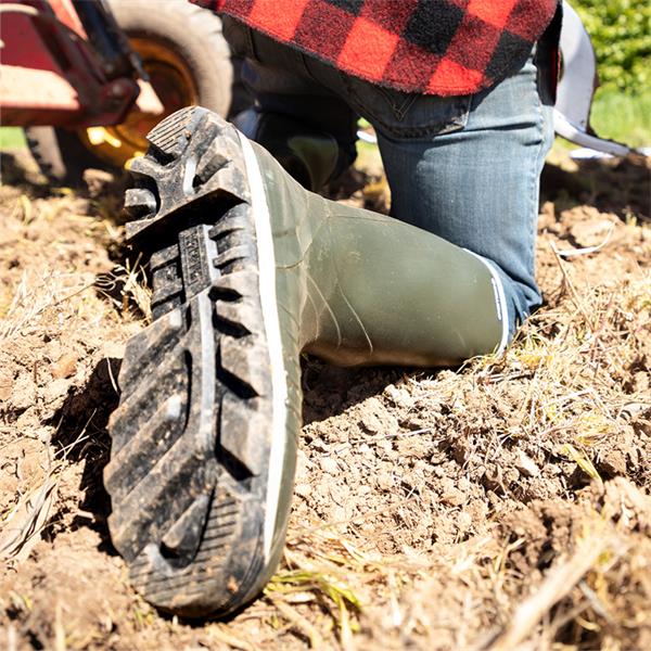 • Knee height gumboot with a second external leg band for trimming to calf height. Ergonomically designed non-insulated, featuring a quick-drying, anti-microbial, and anti-bacterial internal leg lining.