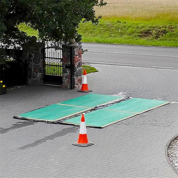 Mats are laid at entrances and entrance gates. Fill with disinfectant liquid, when you drive over the mat, the liquid will rise onto the wheels. Limit the vehicle speed to 5 km/h.